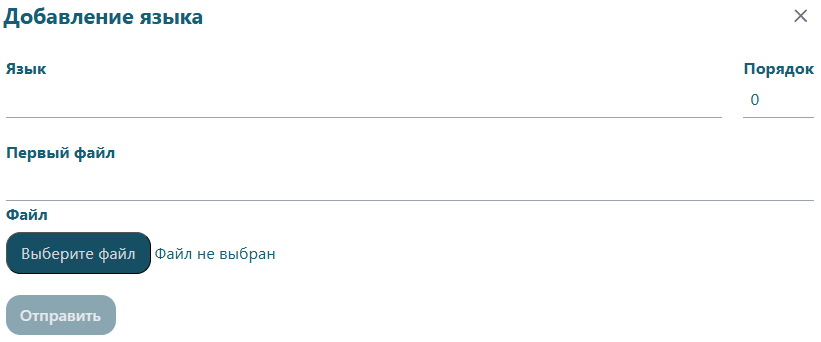На странице добавления языка требуется заполнить поля и приложить файл, а затем подтвердить кнопкой "Отправить".